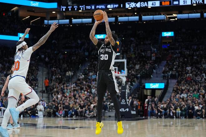 这一表现不仅刷新两项重要纪录:11 记三分球直接打破马刺队史单场三分命中数纪录(此前纪录为 9 记),36 分也创下其个人职业生涯单场得分新高。尚帕尼凭借无解的三分火力和高效的进攻表现扛起进攻大旗,用一己之力点燃球队斗志,要知道他的年薪仅仅300万美元!
